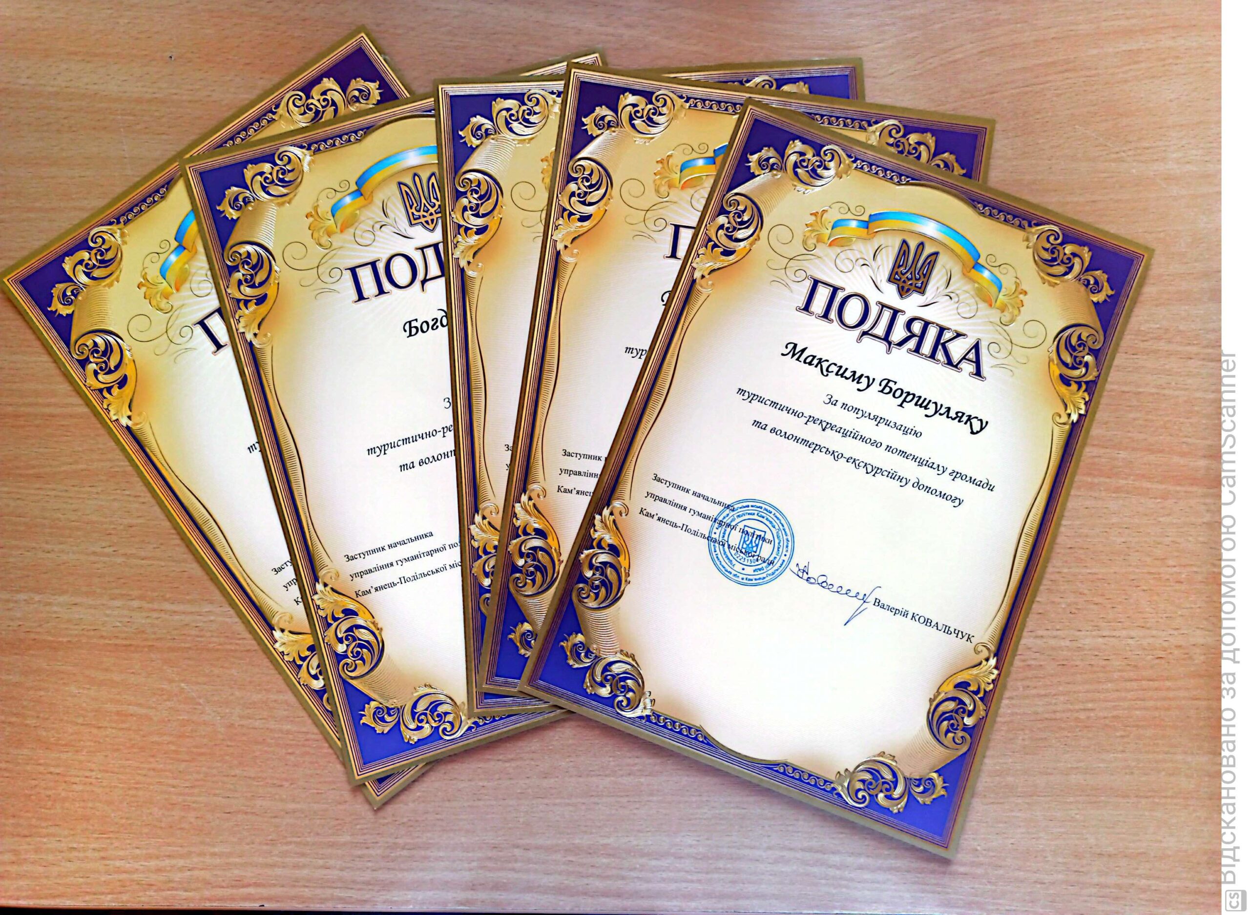Здобувачі вищої освіти другого (магістерського) рівня Максим Боршуляк, Богдан Гіль, Роман Дудченко, Ростислав Перевознюк, Владислав Петрук спеціальності «Туристичний бізнес та індустрія гостинності» отримали подяки від Кам’янець-Подільської міської ради за популяризацію туристично-рекреаційного потенціалу громади та волонтерсько-екскурсійну допомогу.